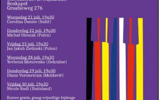 Klavierfestival NiederRheinLande/Pianofestival NederRijnLand e. V. Internationaal Euregio Rijn - Waal Studentenmuziekfestival 19 juli - 31 juli 2021 CONCERTEN IN NIJMEGEN Boskapel Graafseweg 276 Niet alleen kunnen we in dit moeilijke jaar 2021 de internationale studentenmuziekzomer "Campus Cleve" voor zeer getalenteerde pianisten laten doorgaan, ook kunnen we in het kader van het Euregio Rijn-Waal Studentenfestival weer [...]