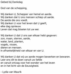 Volgende week woensdag, 9 november 19.30 uur, houden we de dienst in de Boskapel.