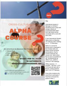 Bekijk grotere afbeelding Student alpha Een nieuwe internationale student Alpha start op zaterdag 13 februari 2021. Alle info vindt je op de poster. Zwarts2021-01-29T11:11:20+01:00 Gerelateerde berichten Ik ben bij je! Gallery Ik ben bij je! God zorgt! Gallery God zorgt! Schijn door mij diner Gallery Schijn door mij diner Start van het nieuwe seizoen 2024/ 25 Gallery Start van het nieuwe seizoen 2024/ 25 De Heer is waarlijk opgestaan! Gallery De Heer is waarlijk opgestaan! Geef een reactie Reactie annulerenReactie Bewaar mijn naam, e-mailadres en website in deze browser voor de volgende keer dat ik reageer. Vul een antwoord in in cijfers:4 × drie = Δ